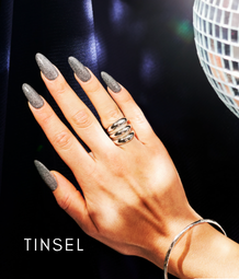Tinsel Nails — Flashing gels deliver the ultimate day-to-night look, coming alive under every flash. Try Tinsel, Sleigh Magnetic or Jewel to dial up the drama with this high-glam seasonal trend.