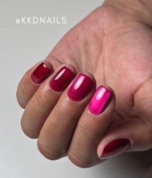 @kkdnails turns up the heat with a full coverage Flirt moment: rich raspberry pink nails with magnetic depth and serious main character energy. This look is bold, sultry and sassy — the kind of cat-eye gel manicure that makes clients say, “I’ll have exactly what she’s having.”